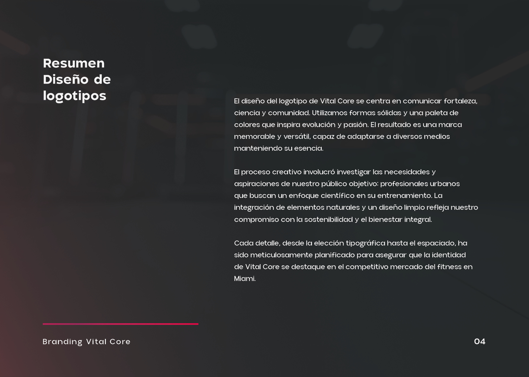 El proyecto de Vital Core se desarrolló en varias etapas estratégicas, con un enfoque en branding, UX/UI y marketing digital: