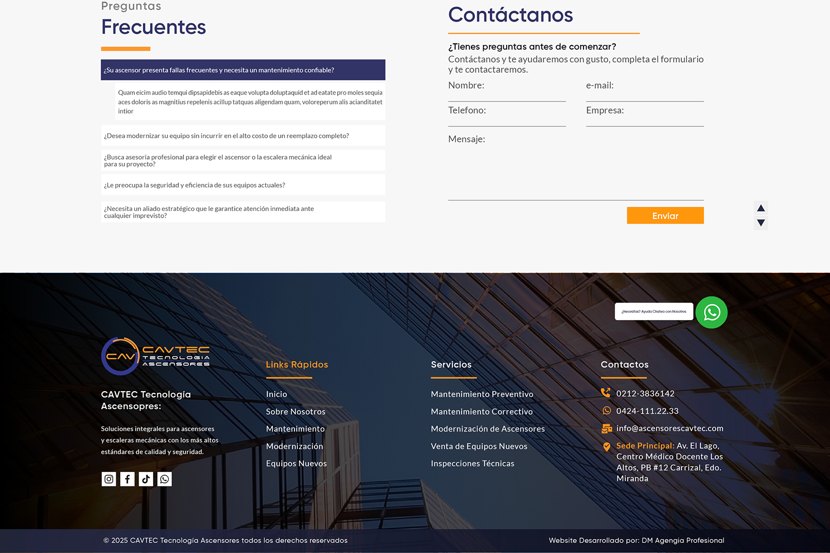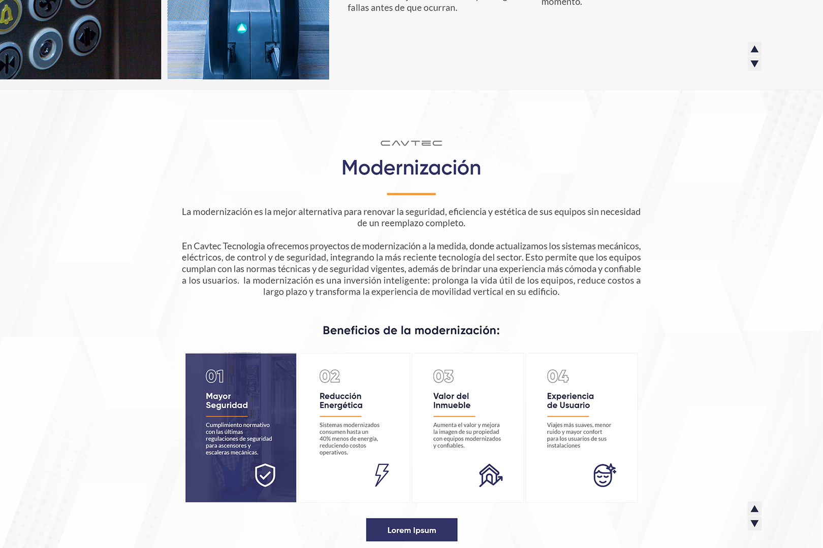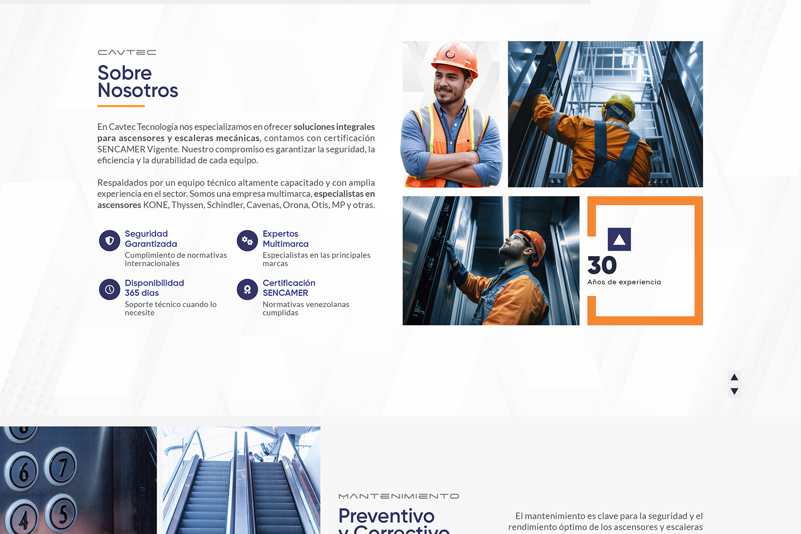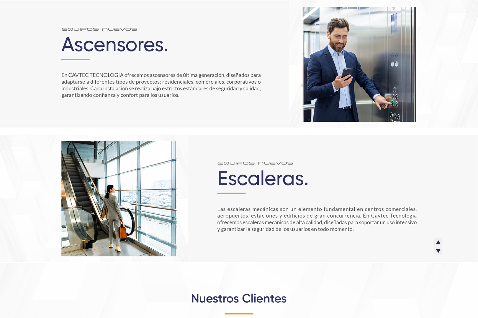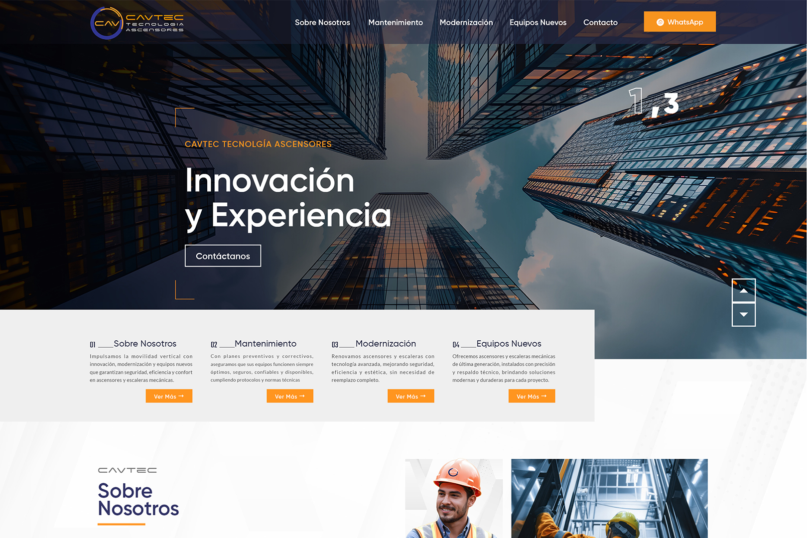 Diseñamos y desarrollamos una web moderna en WordPress con Elementor para CAVTEC, especialistas en ascensores y escaleras mecánicas. El sitio refleja su expertise técnico con un diseño limpio y profesional, enfocado en generar confianza y facilitar la captación de leads.